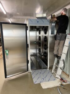 Blæstkøler til 4 stikvogne monteret hos Tims Cookies.