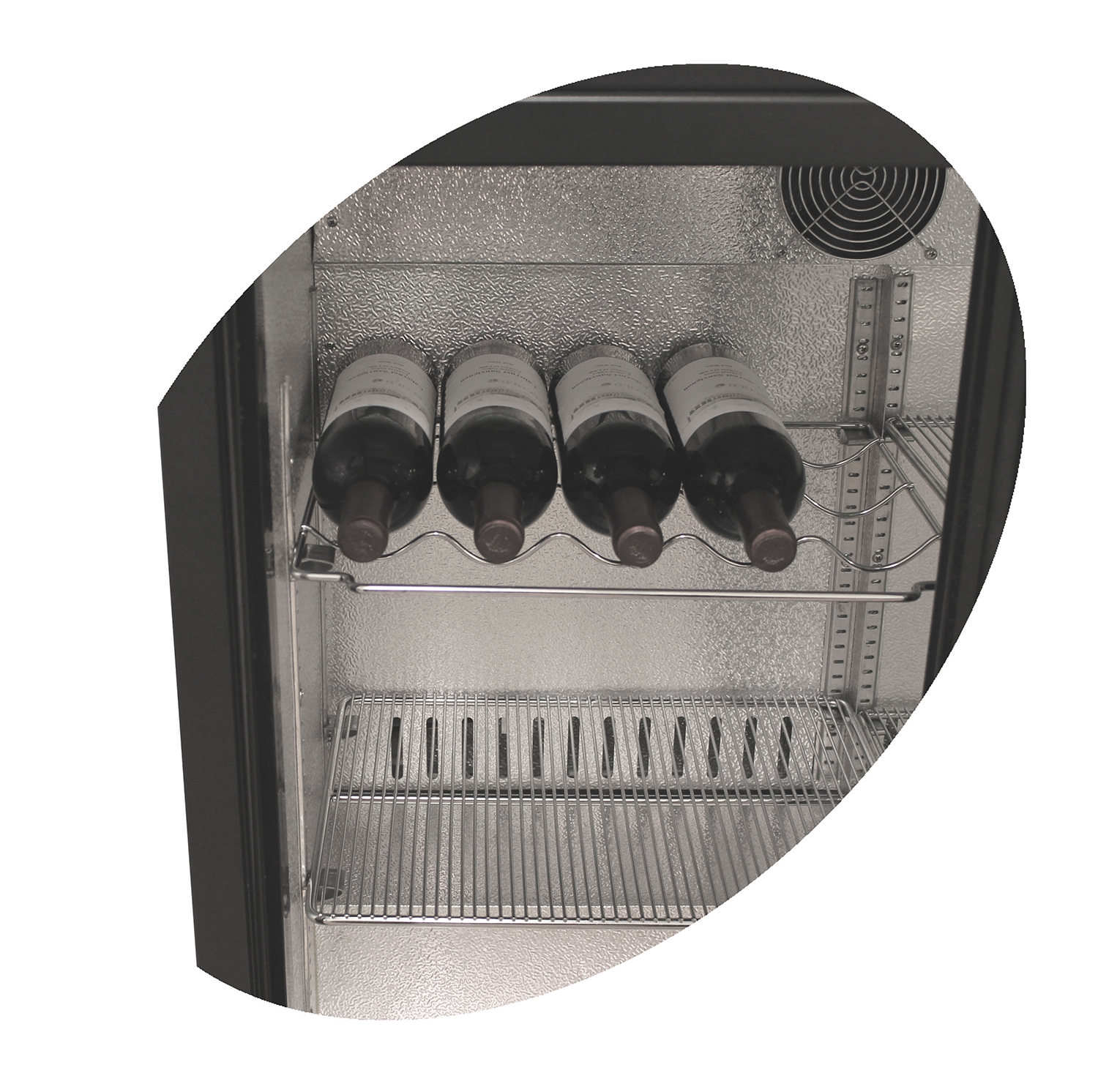 BA er en serie af høj-kvalitets backbarer. Den byder på aluminiumsdøre og tætte trådhylder i krom, der sikrer en god stabilitet samt høj kapacitet. Dørene med dobbeltlags sikkerhedsglas sørger for en god produktsynlighed såvel som et lavere energiforbrug. Fås med 1, 2 eller 3 døre – vælg mellem skydedøre eller hængslede døre. For at sikre at backbaren kan bruges i enhver bar, fås den i to højder: 870 mm og 900 mm.