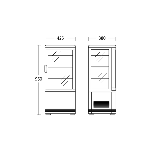 - Mål: B: 428 x D: 386 x H: 960 mm