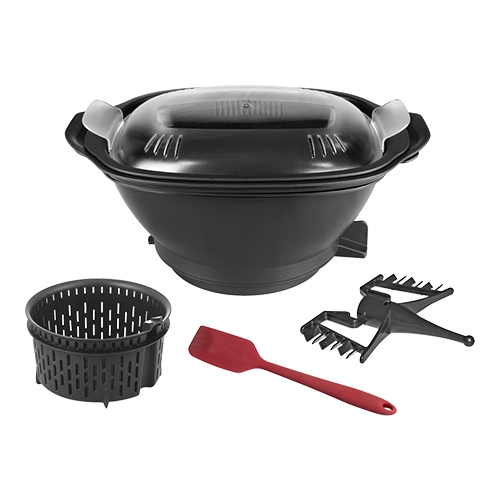 Ud over funktionerne i en traditionel blender er CaterChef Thermo Blenderen udstyret med induktionsvarme til madlavning, dampning og tilberedning af supper, saucer og grøntsager mm. Beholderen på 2 liter af rustfrit stål er let aftagelig, har et aftageligt knivsæt og en sikret låg. CaterChef Thermo Blenderen er nem at betjene via berørings- og drejeknapper, har en tidsur og indbygget vægt. Ved hjælp af induktion opnås præcis opvarmning fra +37°C til +120°C. Følgende tilbehør medfølger også som standard: spatel, piskeris, risbakke og damper. En komplet maskine til mange anvendelser både i det varme og kolde køkken.